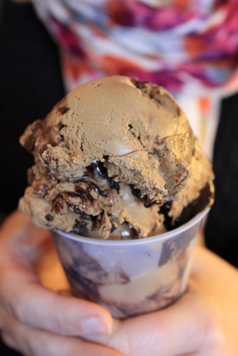 Realistisch gesehen, teilt man diese Megaportion besser mit einer Gruppe von Leuten oder kauft sich eine normale Eisportion. Die Eiskugeln sind auch riesig und sehr lecker. Eine Eiskugel ist wirklich mehr als genug und zwei können eine richtige Herausforderung werden. Schaut Euch Pauls Foto an. Er kämpft darum meine Eisportion zu essen da zwei Eiskugeln einfach zu viel für mich waren.