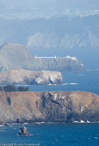 - Aussicht auf den Leuchtturm “Point Bonita Lighthouse” von der Anhöhe beim Muir Beach